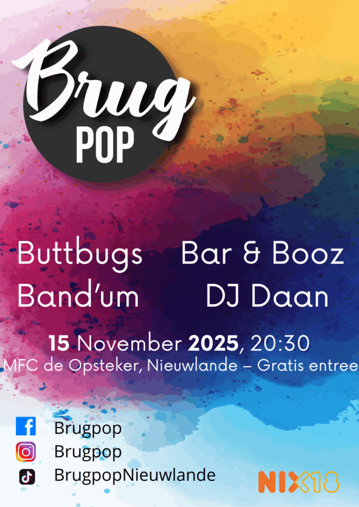 Nieuwlande – Op zaterdag 15 november 2025 barst het jaarlijkse muziekfeest Brugpop Nieuwlande weer los in MFC De Opsteker. De veertiende editie van het festival belooft een avond vol livemuziek, gezelligheid en lokale energie – en zoals altijd is de toegang helemaal gratis.