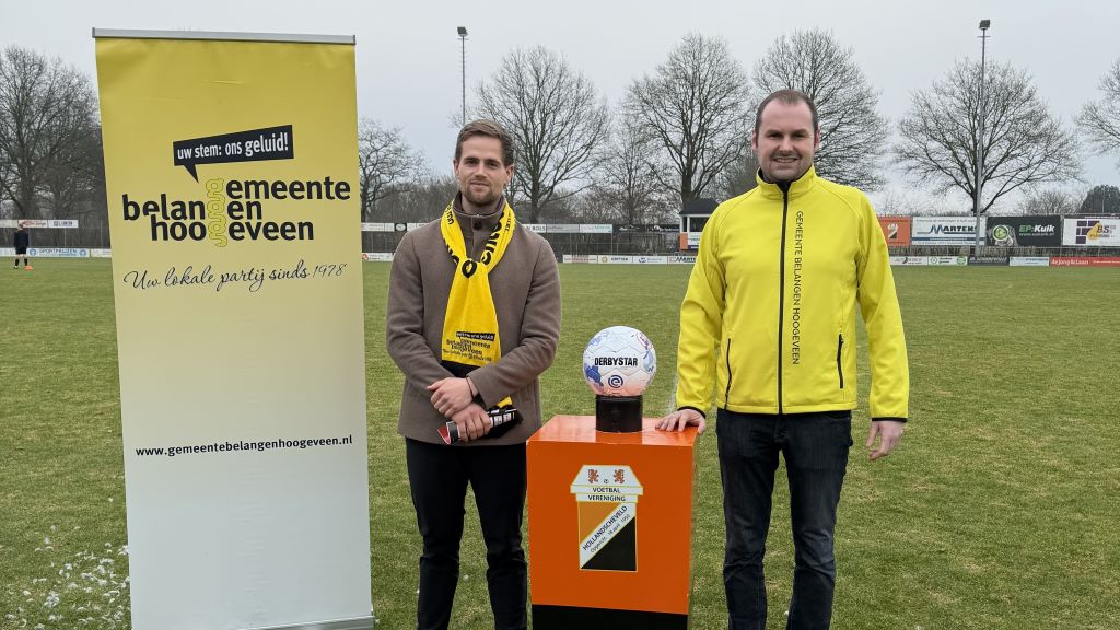 VV Hollandscheveld 1 kon zaterdagmiddag voetballen met een gesponsorde bal van GB. Kanidaat-raadsleden Petra van Eijk uit Pesse, beoogd GB-wethouder Aron Sieders en de beide kandidaat-raadsleden Jary Moman en Bert Mol opgegroeid in Hollandscheveld waren aanwezig bij de wedstrijd.