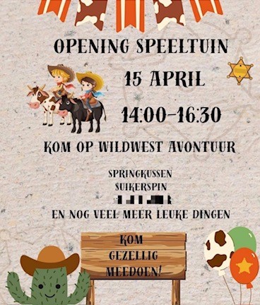Dus poets je laarzen, zet je hoed recht en kom op 15 april naar de speeltuin. Het Wilde Westen wacht, en het wordt een middag om niet te missen.